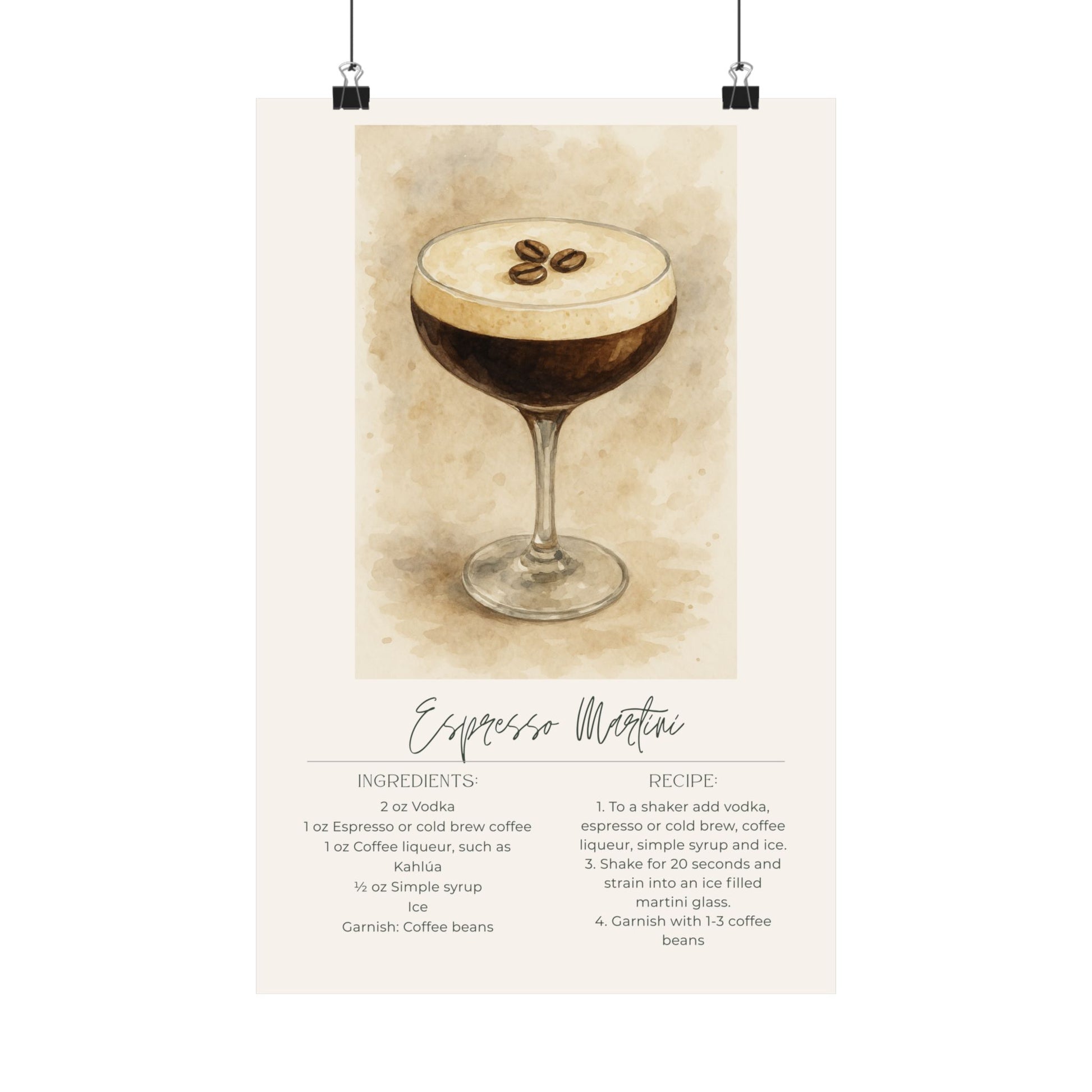 ☕🍸✨ Espresso Martini Poster — Minimal Recipe Print