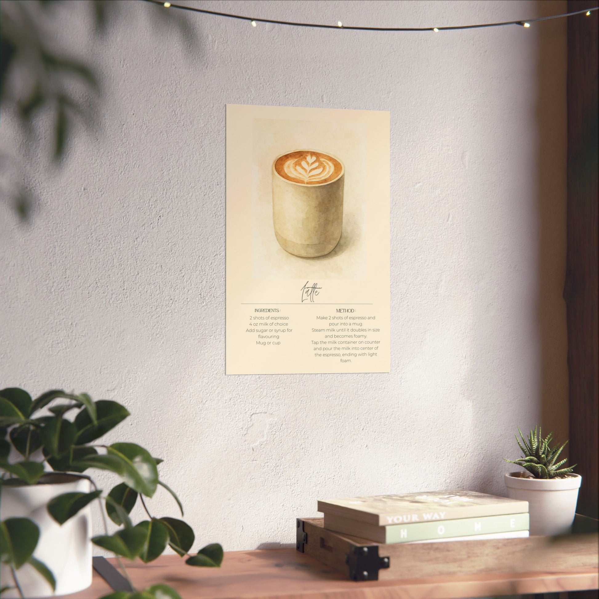Bring soft, cozy café vibes into your home with this minimalist Latte recipe poster. Featuring warm espresso tones and smooth watercolor details, it’s perfect for your kitchen, coffee corner, or home barista setup. A calming, stylish piece for anyone who loves classic, creamy coffee moments.