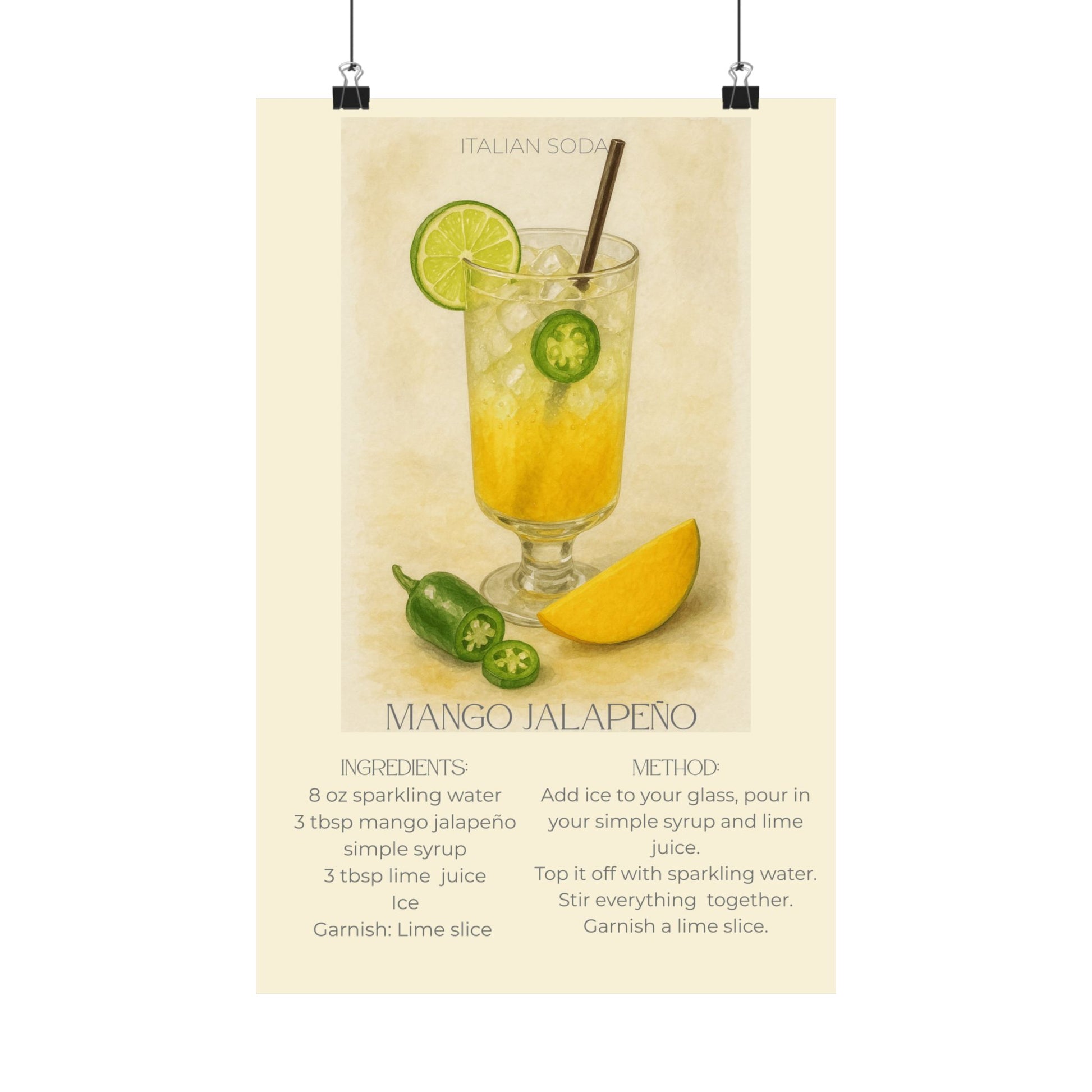 🥭🌶️ Mango Jalapeño Italian Soda Poster — Minimal Drink Recipe Print